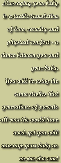 Our hands-on method insures that you will learn the art of interactive massage to suit your baby's individual schedule, needs and developmental level.